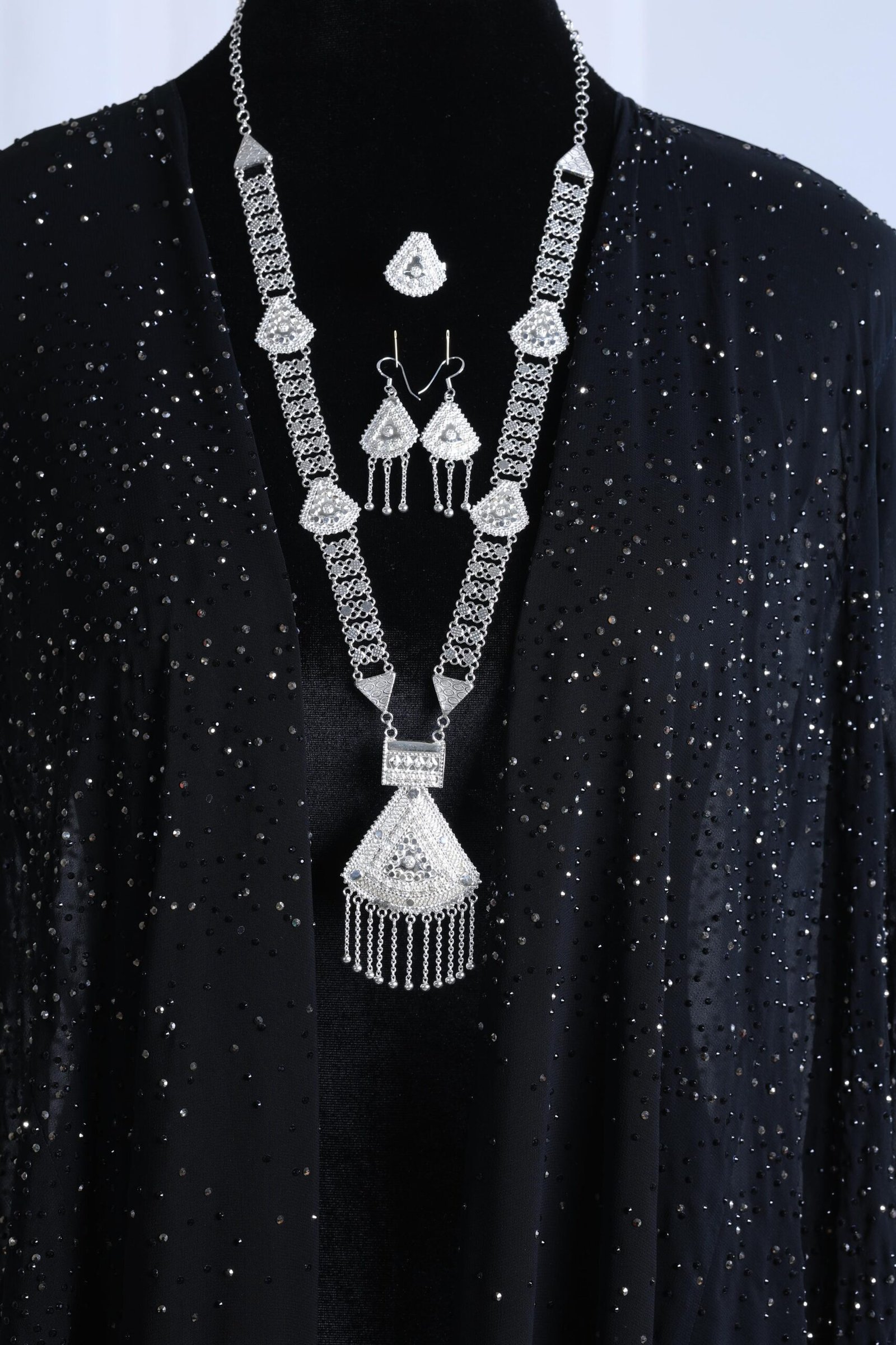 عقد فضة خالص ثقيل للمناسبات يتكون من اربع قطع.